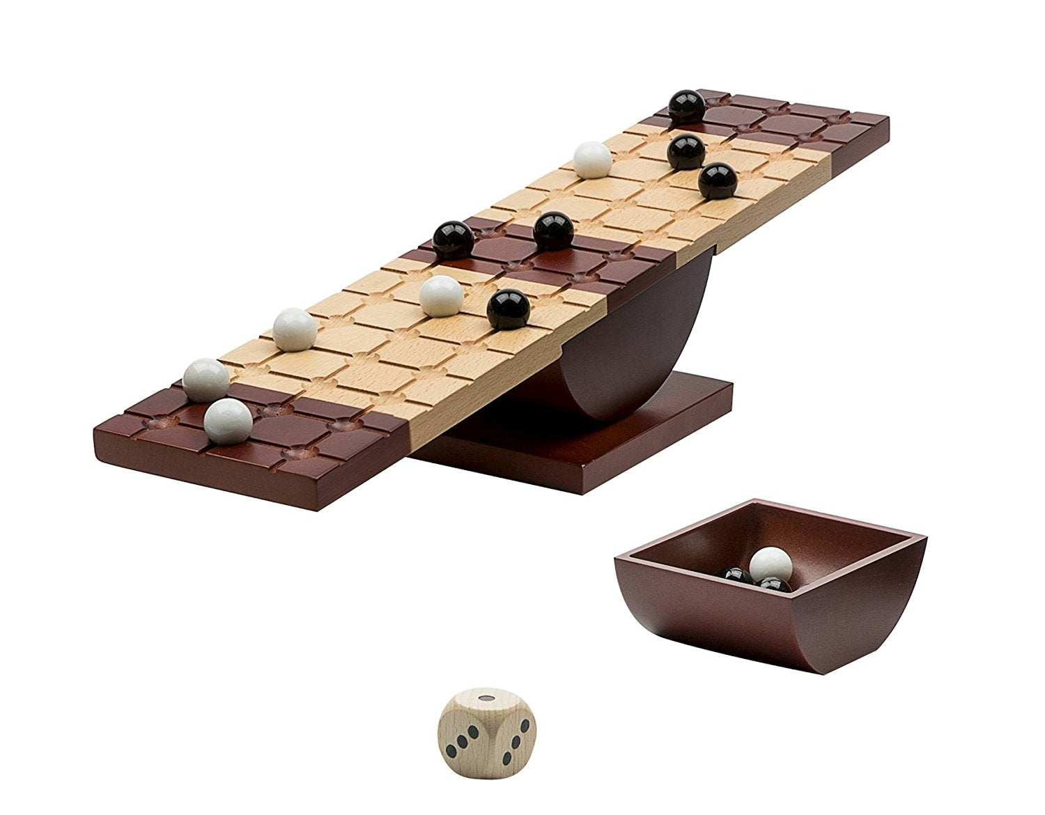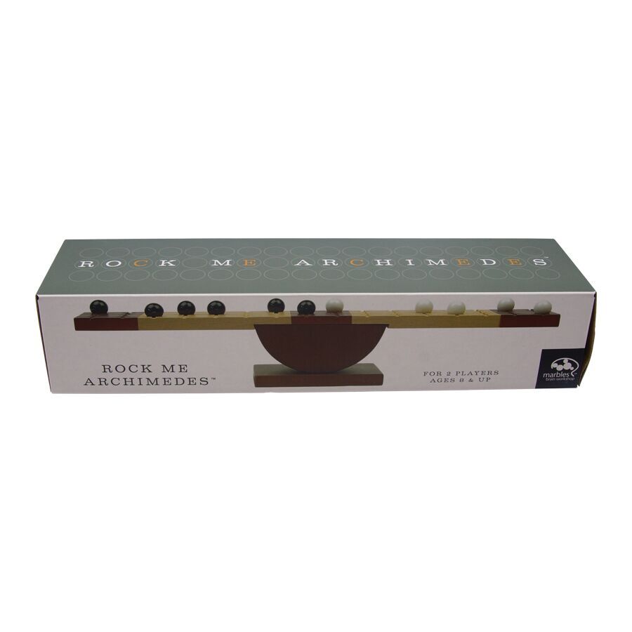 .Archimedes was a Greek mathematician, scientist and all-around uber-genius who discovered the laws of the lever, which in playground terms is basically a teeter-totter. Combining strategy, skill and a little bit of luck, the game consists of a wooden board that rocks like a teeter-totter, a special die and 28 marbles. To be the winner in this game, just be the first player to oh-so-carefully get four marbles to your end of the board without reaching the tipping point, causing it to touch the table. For 2 players ages 8 and up.