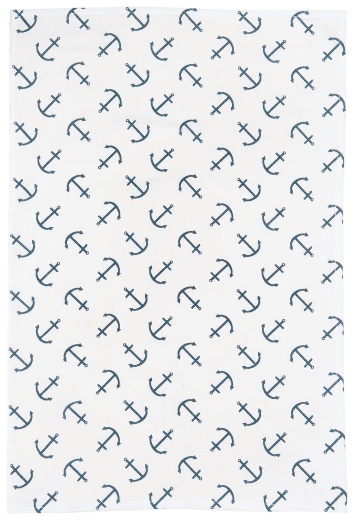 Tea towel with an illustration of a ship on a journey after the Sperm whale and a creature of the deep sea off in the distance. On the reverse side, illustrations of anchors. A beautiful addition to your kitchen.